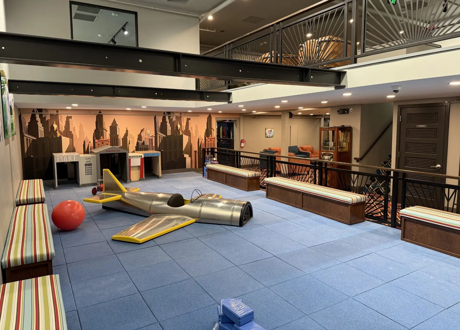 Kids explore through Tiny Town’s fire trucks, hospitals and markets, burn energy, spark imaginations. You sink into plush seating, sip caffeinated beverages, and maybe even catch up on email.